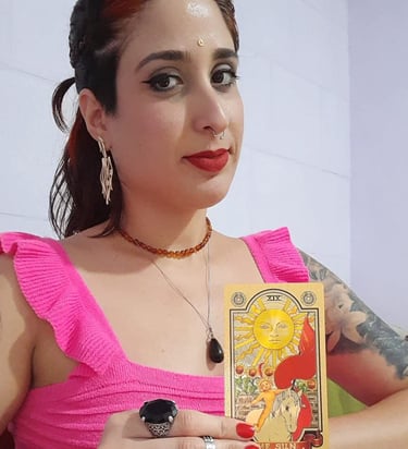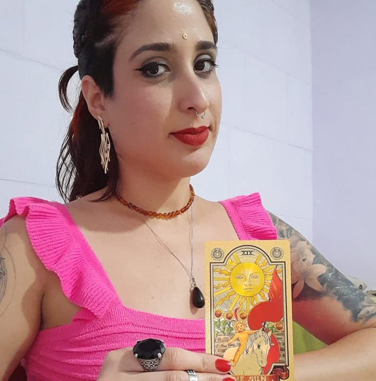 Taróloga, Astróloga, Mestre em Tarô e Reiki, Terapeuta Holística e Massoterapeuta, com mais de 10 anos de experiência dedicada ao autoconhecimento, cura energética e bem-estar integral.